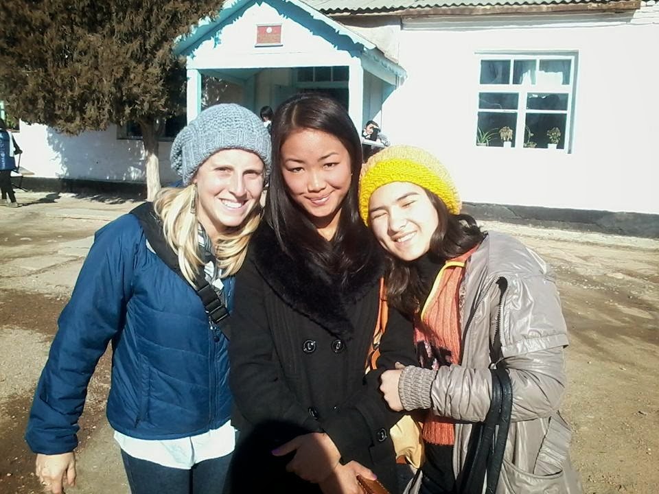 | Asel, Aika and I after an HIV training they gave at a village school. |